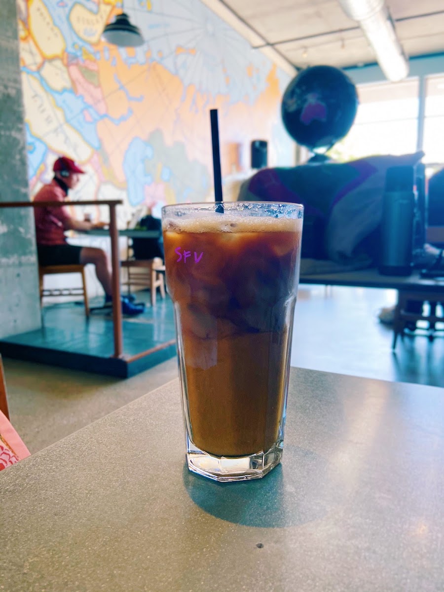 The coffee tasted strong and the atmosphere was so vibrant. It is a great place to take a break. There are two bathrooms.